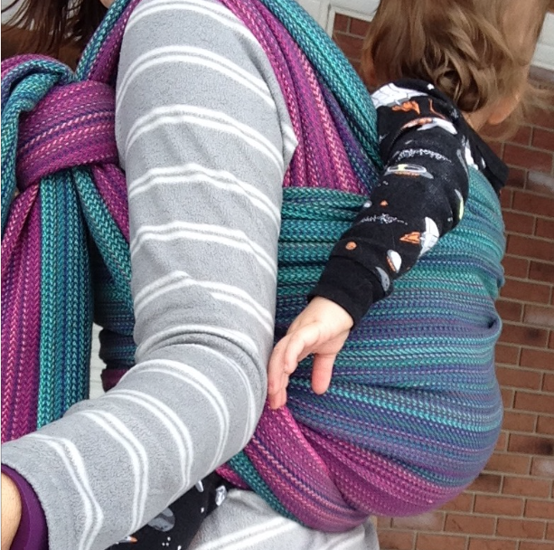 The glide on Morning Glory is fantastic and it holds into place once you you are done. It makes an effortless chestpass as well, being extremely ace bandage-y. This was, perhaps, my favorite quality of this wrap. Those that know me, know I love Indio chestpasses, Morning Glory has taken my top spot for chestpasses, sorry Indio.