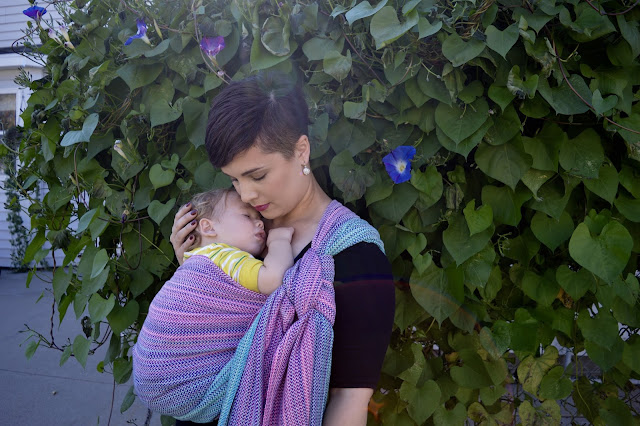 Morning glory will be released with a blue, purple, and charcoal weft. This natural weft is a prototype that will not be released but it will likely be a weft for future designs. There will be a pre order available on the website on Sunday November 1st at 5 pm EST that will include 8 wraps and 2 ring slings for each weft. There will be a small release in December as well. Each warp is custom and unique and designs will not be re-woven so this offers a great artistic small batch product that I would expect to hold it's value (which if you're a churner like me is important). Due to the limited nature of this product I would expect the pre order and the release to sell out rather quickly, so get ready to stalk!